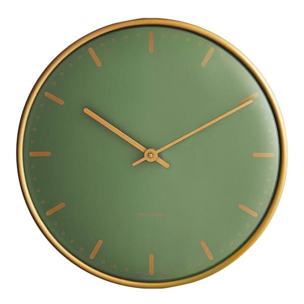 Da Arne Jacobsen skapte veggklokken City Hall til Rødovre Rådhus i 1956, skapte han samtidig et designikon til boligen. Veggklokken finnes i 3 størrelser og produseres i dag tro mot de originale tegningene. Denne på 29 cm er den største. Urkassen, som holder den konkave glassfronten, gir klokken et svevende uttrykk på veggen. En god gaveide til bryllup, jubileum, fødselsdag, studenten og andre spesielle anledninger.