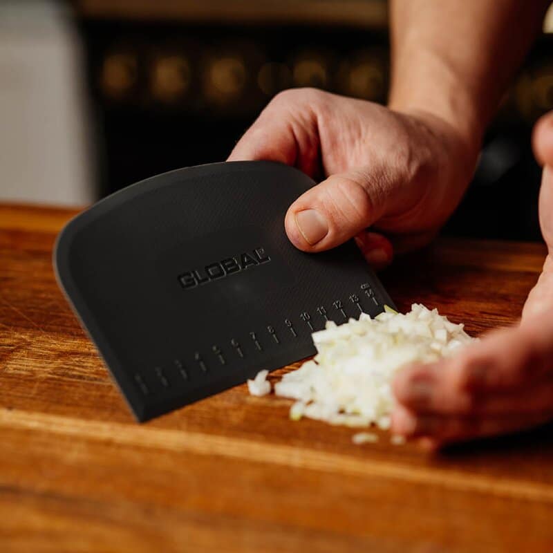 Global Classic benkskrape 15 cm grå er den lille kjøkkenhjelpen du ikke visste at du trengte – helt til du har brukt den. Den fleksible plasten følger underlaget perfekt og gjør det enkelt å holde arbeidsflaten ren, enten du baker brød eller kutter grønnsaker.