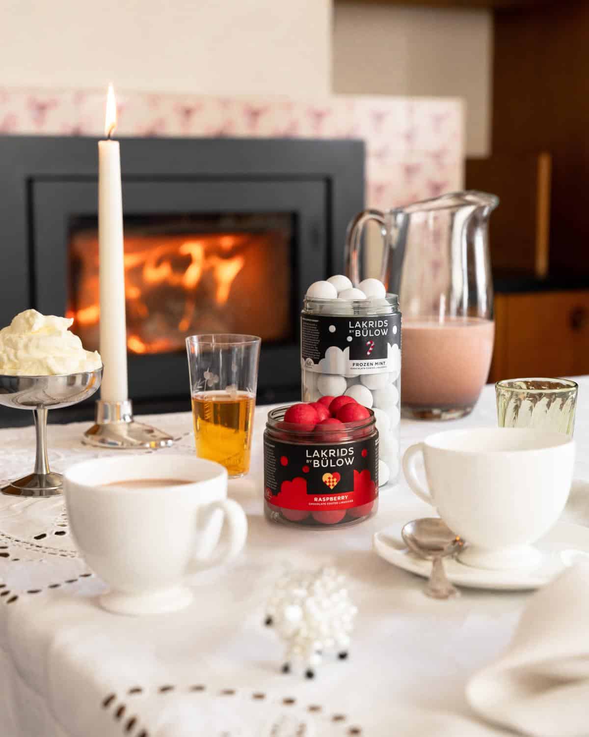 Hvit sjokolade • Bringebær • Jordbær • Søt lakris