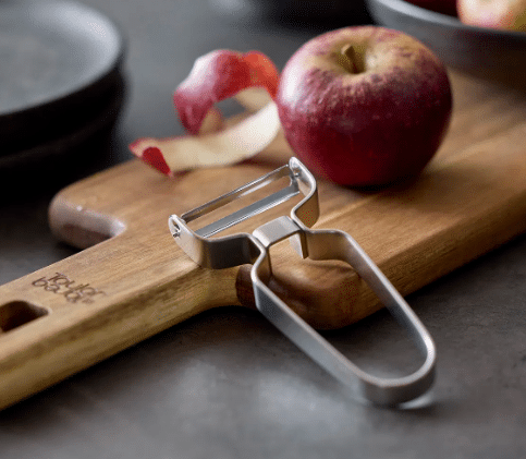 Du har et godt grep om den effektive grønnsaksskrelleren med et blad av sylskarpt kvalitetsstål, uansett om du foretrekker å bruke høyre eller venstre hånd, eller om du skreller fra eller mot deg selv. Denne serien med kjøkkenredskaper heter Diversity. Serien hyller mangfoldet i alle dets tidligere, fra det rike mangfoldet i kjøkkenhagen til mangfoldet i redskapene. De er laget av rustfritt stål og bør vaskes i oppvaskmaskinen før første gangs bruk.
