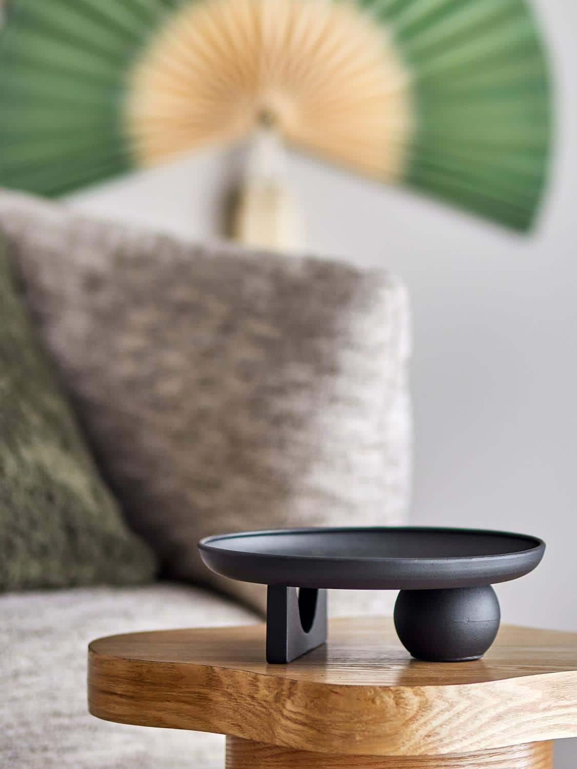 Dustin-brettet fra Bloomingville er et skulpturelt jerndesign med en rund topp balansert på en glatt kule og geometrisk blokk. Det har en mørk tone og gir hyller eller bord et moderne preg med sin særegne silhuett. Kun egnet for utstillingsformål.