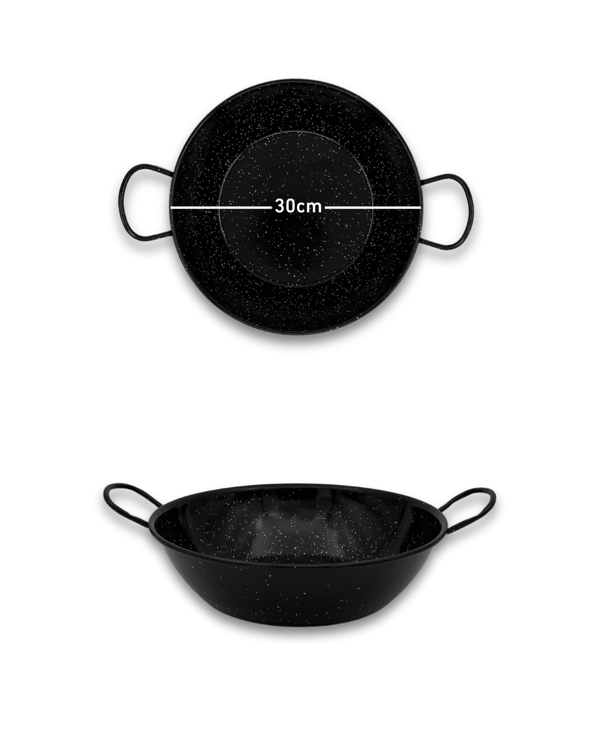 Emaljert gryte/panne 30 cm i diameter og 8,5 cm høy.