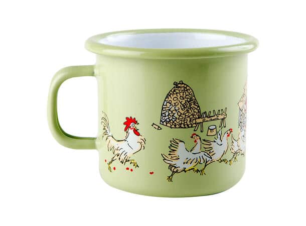 Emaljekoppen har en myk kantovergang for å skape en behagelig overflate å drikke fra. Emaljekoppen er godkjent for bruk på komfyr, induksjonsplate, ovnen og i oppvaskmaskin. Ikke godkjent for bruk i mikrobølgeovn.