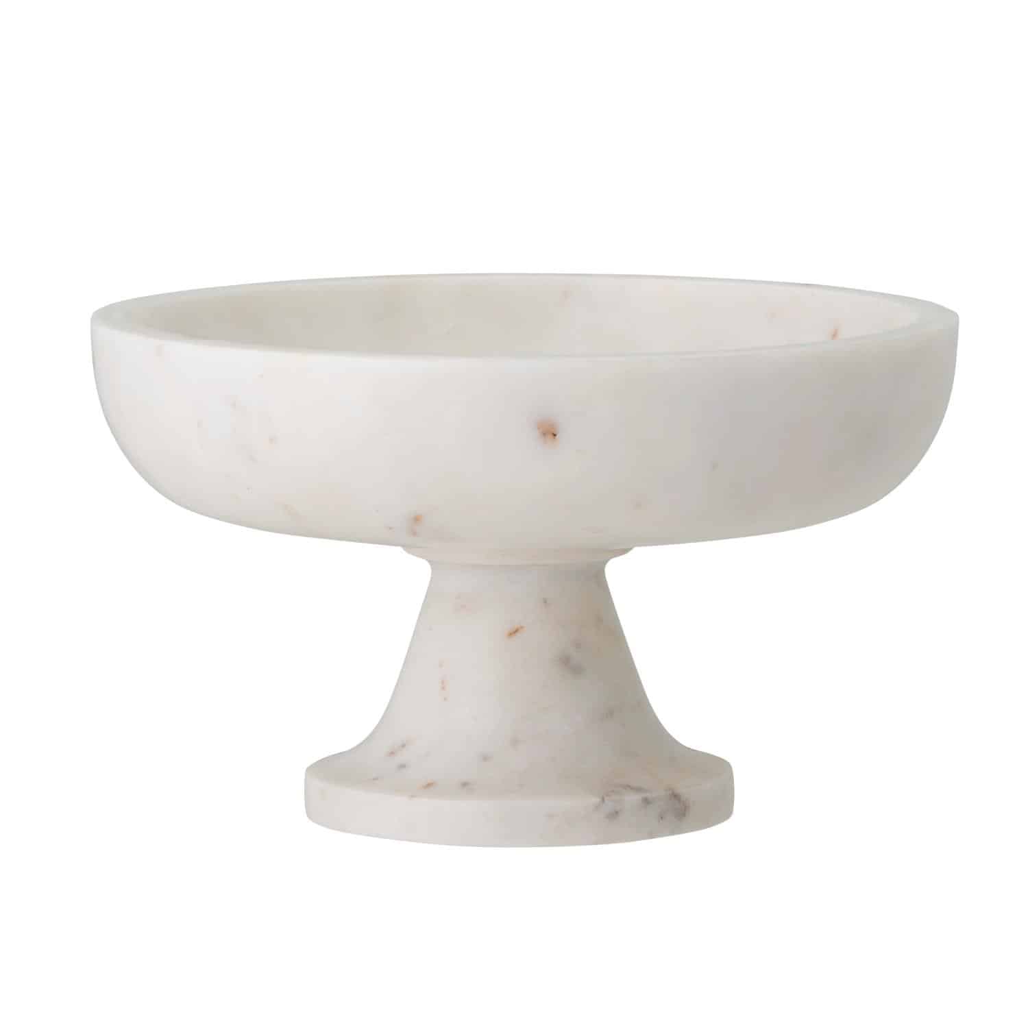 En enkel og elegant pidestallskål i nesten trofélignende kopplignende design laget av hvit marmor. Den høye stilken løfter skålen opp og hjelper deg med å skape en luftig og elegant borddekking eller fungere som en dekorativ skål på kjøkkenbordet. Enten du setter en salat, frukt eller kanskje til og med kaker i denne skålen, sørger den høye stilken for at den vil bli vist frem med eleganse og se både velsmakende og innbydende ut.