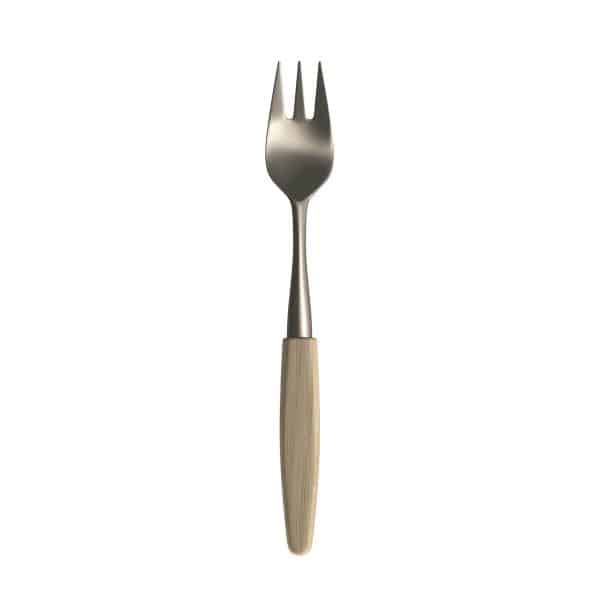 Fjord kakegaffel. Naturen er alltid til stede i vårt design. Da Restaurant Under ba Skaugum om å lage deres bestikk, ble Skaugum inspirert av overgangen mellom sjø og land. Drivveden som formes til kunst av tidevannet på et bart svaberg. Resultatet ble FJORD. Norsk eik, formet av naturen, kombinert med mørkt stål som gjenspeiler havets farge en høstdag. Det blir ikke vakrere enn dette. Skaugum Bestikks logo er din garanti for at du har et håndlaget, norsk kvalitetsbestikk.