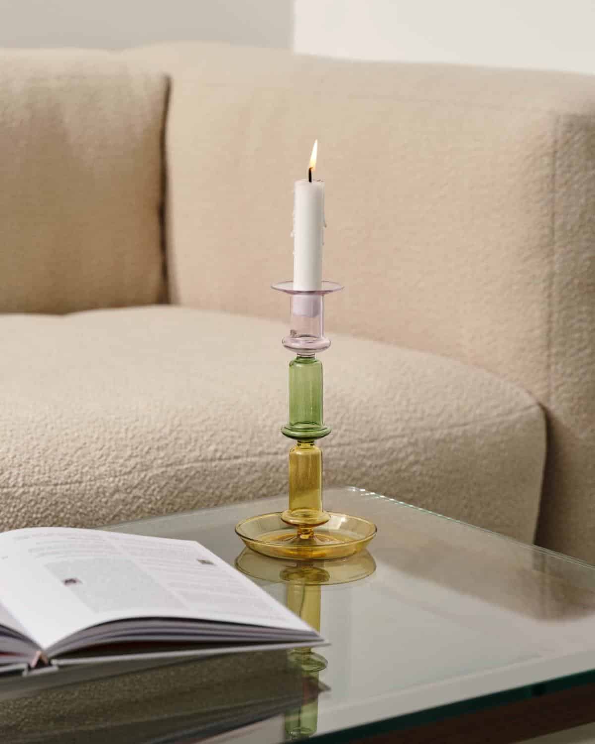 FLARE LYSESTAKE H21 CM REGNBUE ROSA GRØNN GUL HAY