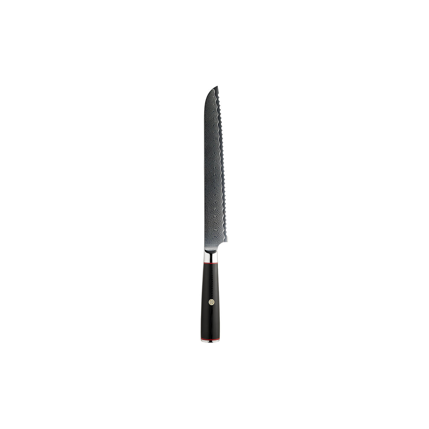 Den perfekte brødkniven med et ultraskarpt 23 cm takket blad, som lar deg enkelt skjære alle typer brød og for eksempel skjære svinestek eller porchetta med en sprø skorpe. Til våre kniver bruker vi ultraskarpt stål, som er laget av 67 lag Damaskus-stål med en hard kjerne av VG10-stål, som gjør kniven ekstremt skarp og slitesterk i bruk, og som gir stålet et vakkert og organisk mønster. Håndtaket til våre Fusion Blades er laget av et vakkert og slitesterkt komposittmateriale av harpiks og glassfiber, som med vakre detaljer gjør våre Fusion Blades til en fryd for øyet og produserer en kniv av ekstremt høy kvalitet.