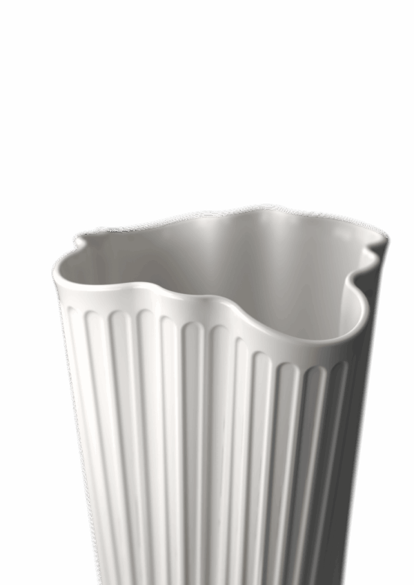 Hammershøi Unfold, som resten av Hammershøi-serien, er skapt av designer Hans-Christian Bauer, inspirert av en av Svend Hammershøis klassiske vaser fra 1930-tallet. Med sitt karakteristiske organiske og lekne design gir den deg muligheten til å eksperimentere og style blomstene dine enkelt og naturlig. Det myke uttrykket i Hammershøi Unfold står i sterk kontrast til den klassiske Hammershøi-vasen, men det trente designøyet vil umiddelbart merke den enorme likheten og den svært familiære følelsen i form av vasens riller, materiale og sterke tilstedeværelse. Med Hammershøi Unfold får du både en moderne og nostalgisk tolkning av Kählers håndlagde designtradisjoner i et moderne, fremtidsrettet perspektiv – to unike kunstverk i et helt spesielt uttrykk av dybde og liv som alltid har vært designtråden i Kählers stolte håndverkstradisjoner. På alle måter en sann hyllest til 10 år med Hammershøi-seriens mangfold.