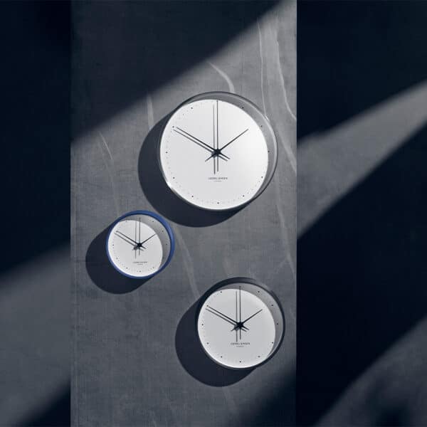 Koppel veggur i rustfritt stål med hvit klokkeskive fra Georg Jensen. Farge: stål/hvit. Mål: H: 6 x Ø 22 cm. Design: Henning Koppel.