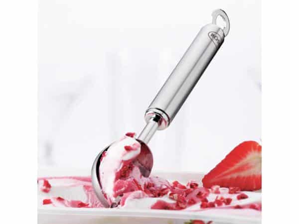 Beskrivelse: RÖSLE isskje til å forme porsjoner av is og lignende desserter i en flott rund kule. Tåler oppvaskmaskin.