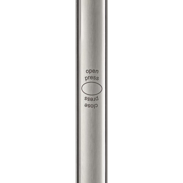Beskrivelse: RÖSLE kjøkkentang med patentert åpnemekanisme, som gjør det mulig å åpne og låse tangen med bare én hånd. Tåler oppvaskmaskin. Sikker og komfortabel håndtering er sikret gjennom det ergonomiske designet. Kjøkkentangen kan låses på plassbesparende visår den ikke er i bruk.