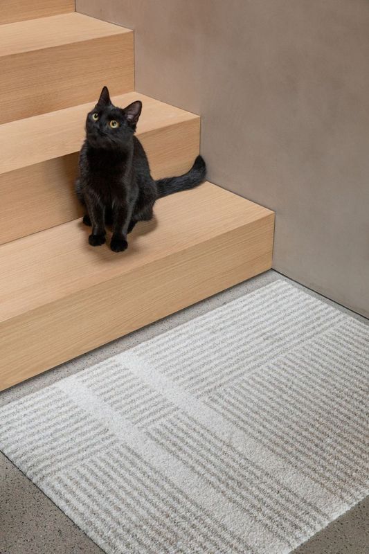 Løype Breezy Beige er inspirert av de friske løypene i langrenn. Et skispor krysser matten i et enkelt, grafisk mønster, og skaper en vakker dialog mellom lys og skygge. Resultatet er både klassisk og moderne, med melange nyanser som effektivt skjuler grus og skitt. Et solid hverdagsobjekt designet av Vera & Kyte .