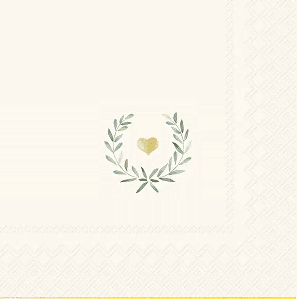 Lunsj Serviett Laurel Wreath Heart Cream, Helår