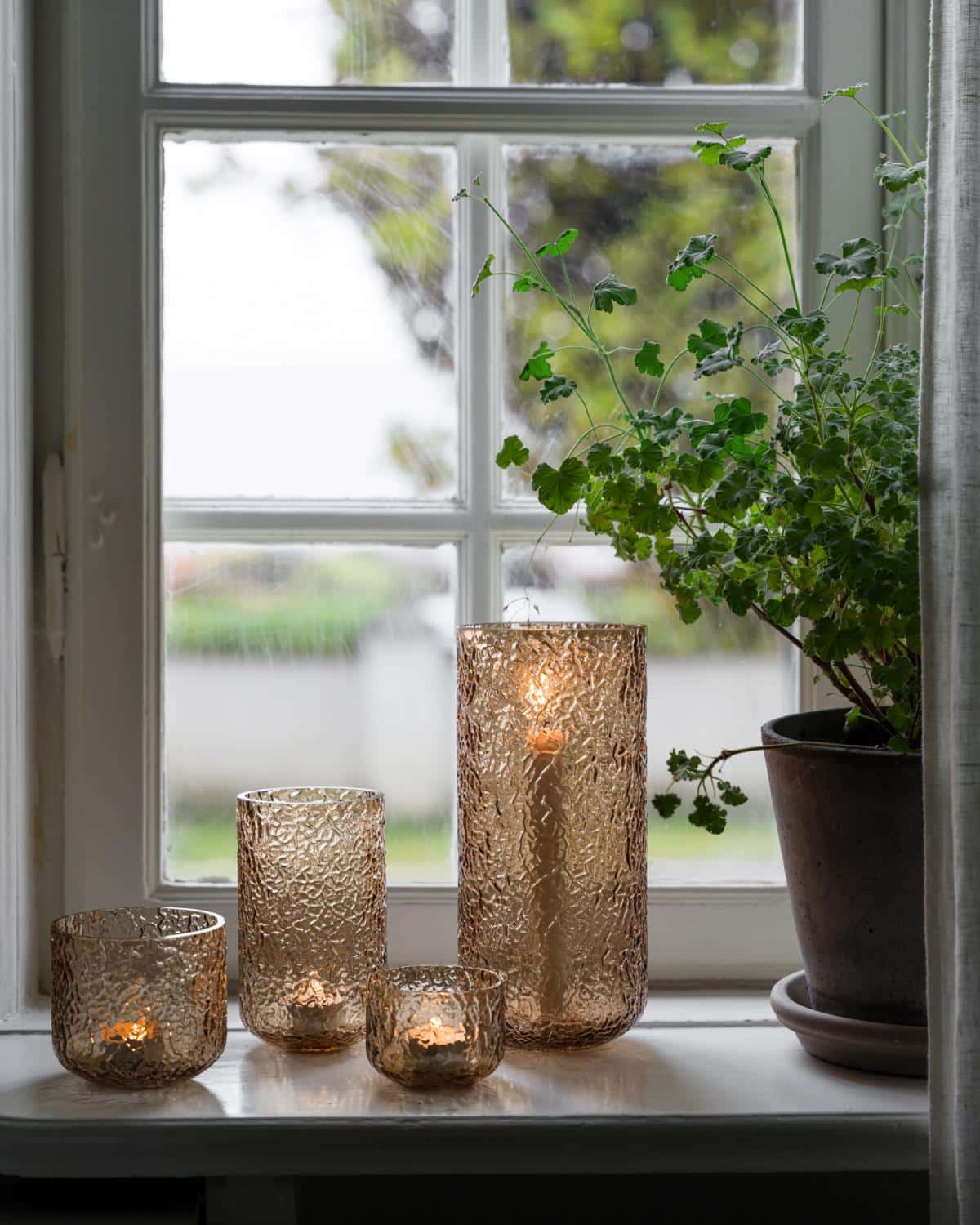 ERNST glasslykt i ravfarget glass – en vakker detalj som både lyser opp hjemmet ditt og kan brukes som vase til favorittblomstene dine.