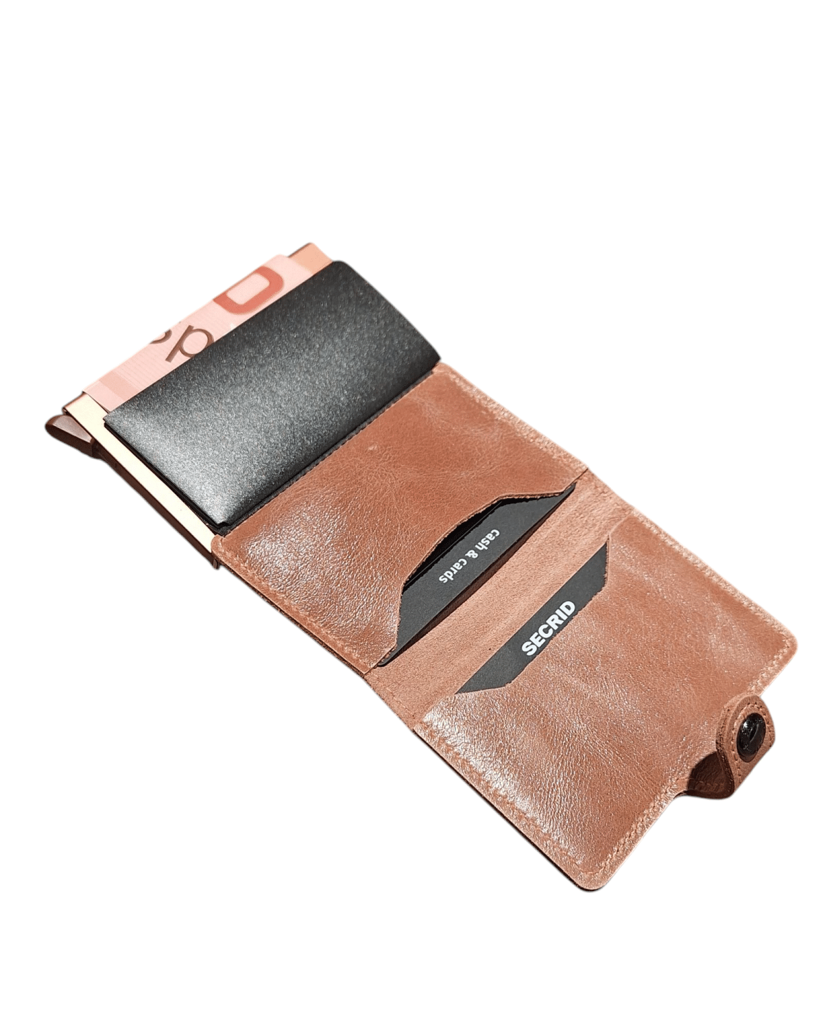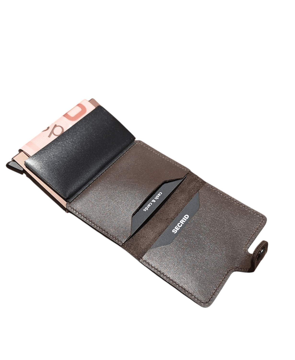 Eksteriøret rommer sedler, kvittering og kort, mens Cardprotector i aluminium lar deg skyve ut kort med en enkel bevegelse og beskytter dem mot bøyning, brudd og uønsket trådløs kommunikasjon.