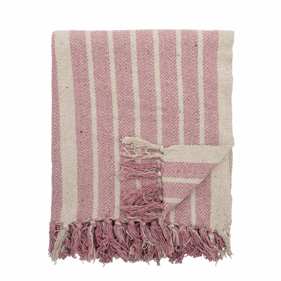 Monta-pleddet fra Bloomingville er et vevd pledd med fine striper i en myk rosa fargetone. Det elegante designet gir interiøret et preg av farge, mens de dekorative frynsene gir pleddet et sjarmerende utseende, noe som gjør det ideelt for stuen eller soverommet.
