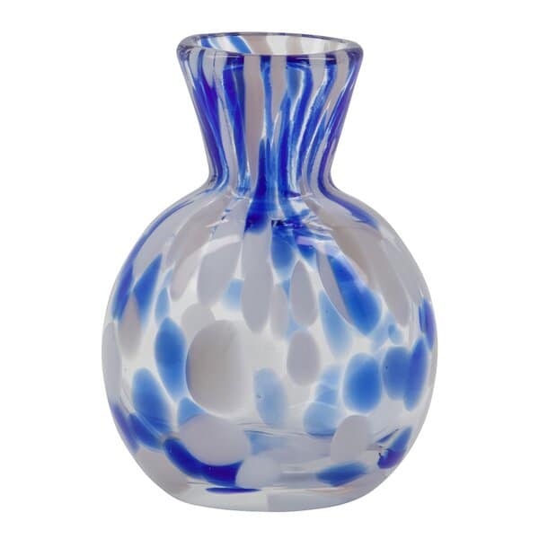 Mote vase 11 cm blå fra House Doctor er en sjarmerende og unik vase som tilfører et hint av farge og karakter til interiøret ditt. Den håndlagde utformingen gjør at hver vase har sin egen personlige finish, med små variasjoner i farge og størrelse, noe som gir den et autentisk preg.