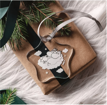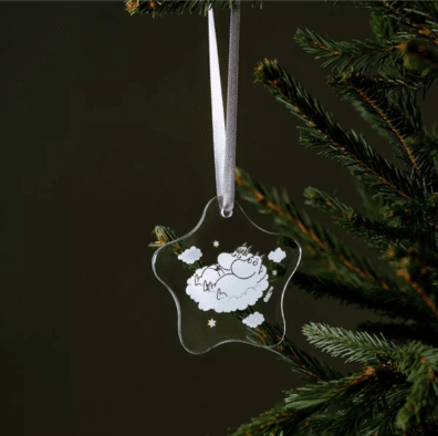 Mummi ornament med motiv av Snorkfrøken, laget i glass. Dekorasjonen er stilren og passer utmerket på årets juletre eller et annet sted i hjemmet.