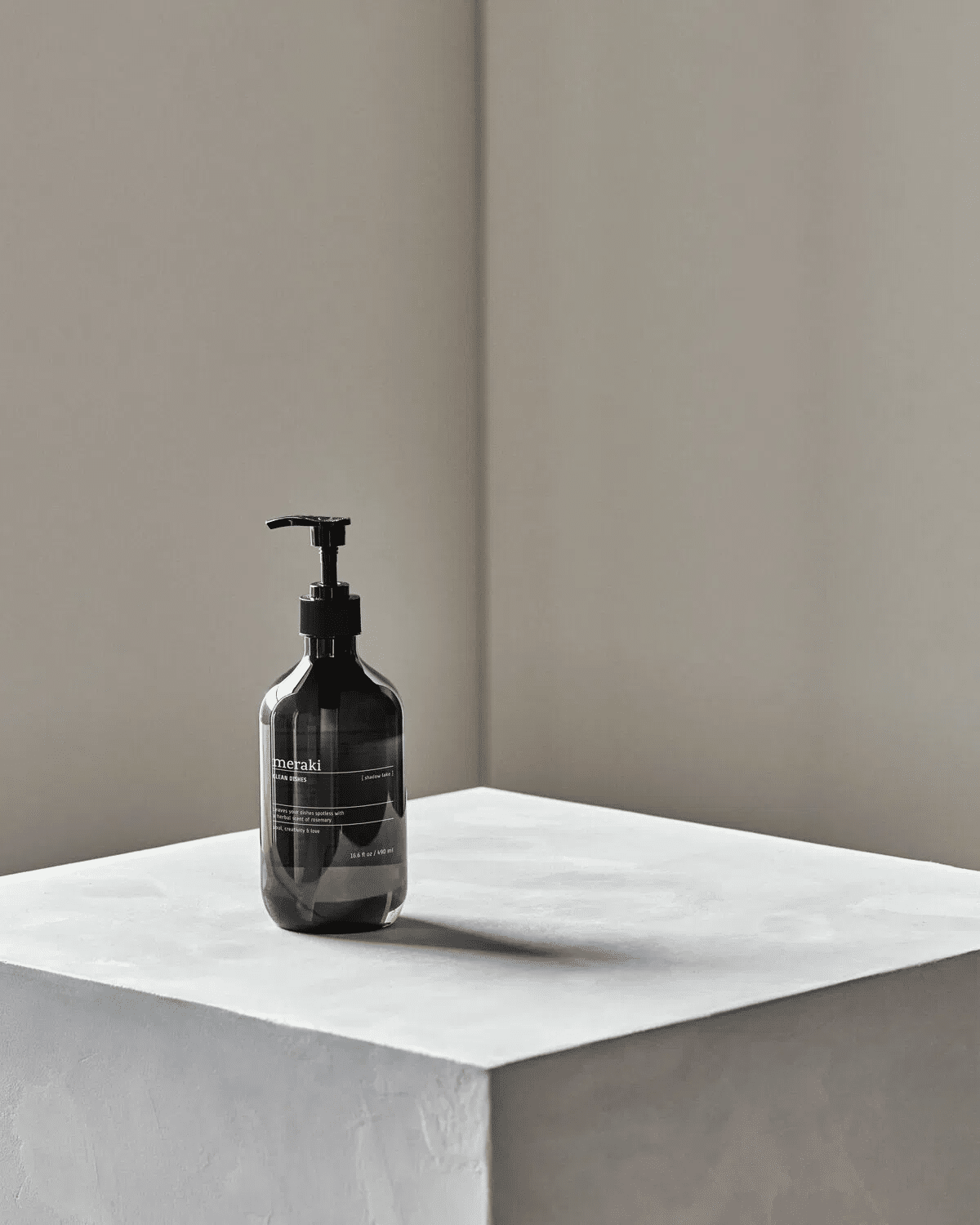 Meraki Shadow Lake oppvasksåpe 490 ml bringer en følelse av velvære til kjøkkenet. Den elegante grå flasken rommer en duftreise fra friske mandarintopper til et hjerte av rosmarin og en varm, myk muskbase.