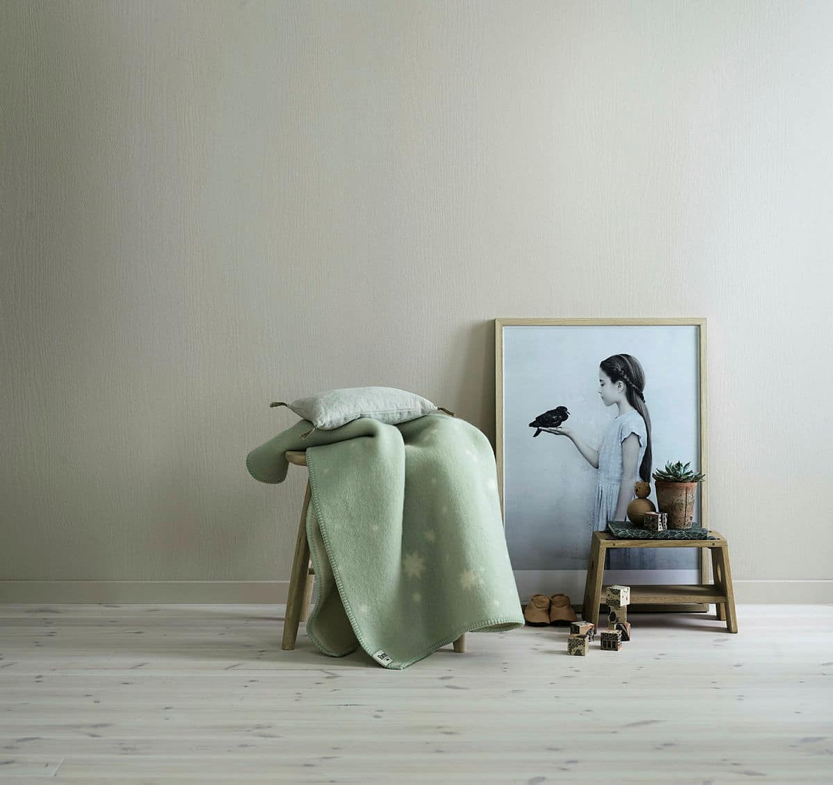 Materiell pleie Renhold Rengjør ullteppet så sjelden som mulig, da overdreven vask kan forårsake krymping og slitasje. Omødvendig, vask rent med en fuktig klut. Håndvask (30 ° C eller 86 ° F) og bruk mildt vaskemiddel for ull. Tørking Ikke rist eller vri ullteppet. I stedet klemmer du forsiktig ut overflødig vann og legger det flatt på et rent, tørt håndkle for å lufttørke. Lagring Brett ullteppet pent og oppbevar det på et kjølig, tørt sted. Unngå Unngå å bruke tøymyknere eller blekemiddel. Unngå direkte varme eller sollys, da dette kan føre til falming. Unngå å oppbevare i plastposer, da ull må puste for å holde seg frisk.