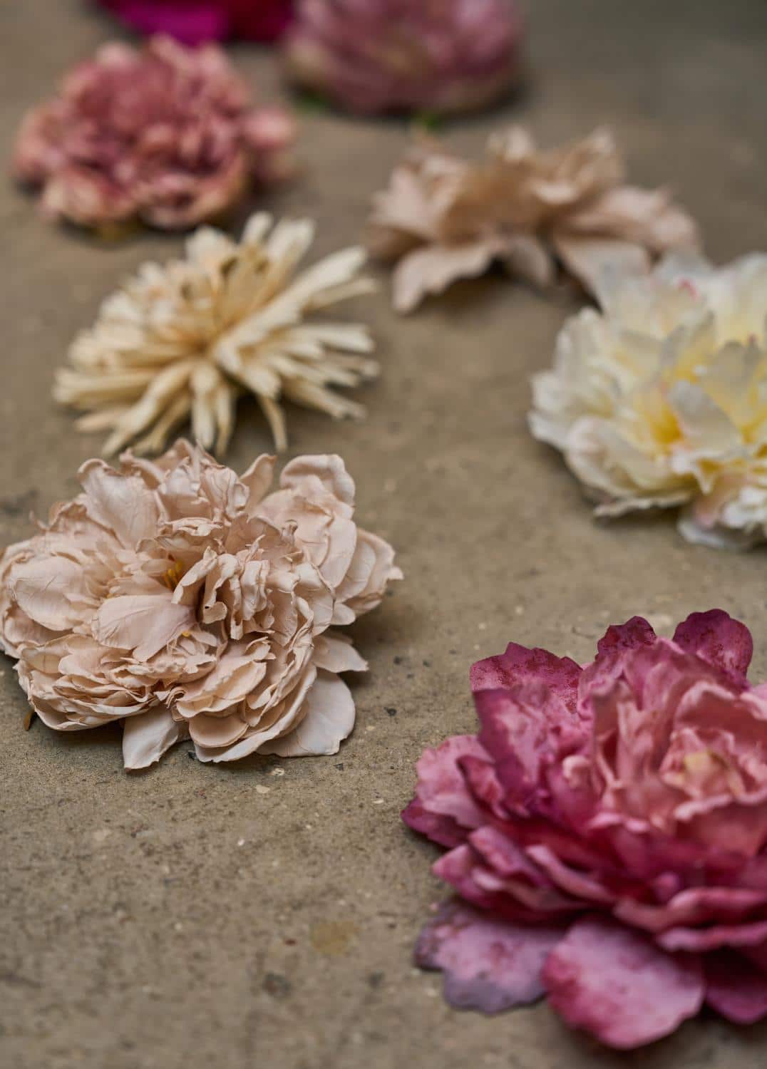 Dekk bordet med naturlige blomster uten stilk, eller bruk dem til pynt andre steder.