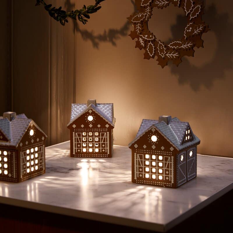 Kähler Gingerbread er en smakfull juleklassiker i håndlaget keramikk, som forener moderne design med tradisjonelle håndverkstradisjoner. Serien inneholder vakre tolkninger av honningkakehus og en julekrans, der varmen fra telysene møter den nostalgiske sjarmen fra klassiske juletradisjoner.