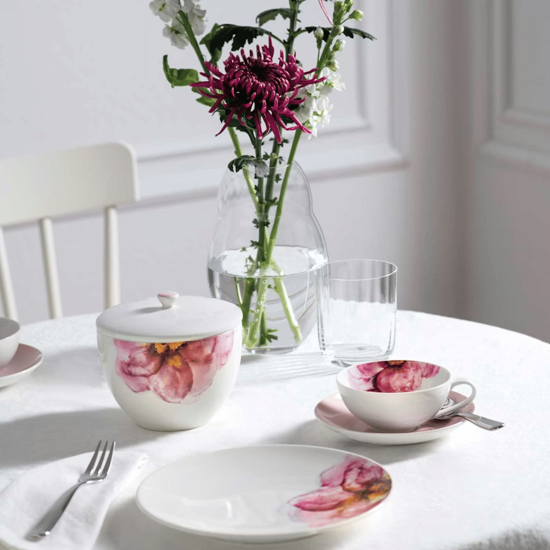 Rose Garden avduker et vintage-utseende med rosa blomster. Det nye serviset med blomsterdekorasjoner i landlig stil skaper den perfekte atmosfæren for avslappede øyeblikk – fra spesielle anledninger som påske og morsdag til brunsj og kaffe med familie eller venner. Den ekstra store koppen med et blomstrete vintage-utseende har den perfekte størrelsen for en forfriskende kaffe eller deilig te om morgenen. Den er også ideell for servering av små cupcakes. Velg tidløst design og blomstertrender.
