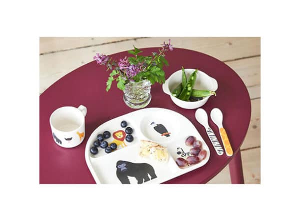 Dette vakre serviset med motiver fra Safari og ulike dyr vil gjøre ethvert måltid litt morsommere for barna. Dette serviset gir en perfekt start når den lille skal begynne å spise selv. Innholder tallerken med 4 rom, bolle, kopp og 2 skjeer. Kan vaskes i oppvaskmaskin. Ikke til bruk i mikrobølgeovn.
