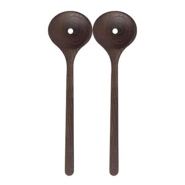 Yami-salatbestikket fra Muubs er et stilrent og funksjonelt tilskudd til kjøkkenutstyret ditt. Laget av karbonisert asketre, har bestikket en dyp, mørk farge som er karakteristisk for Yami-serien. Den unike fargen og teksturen gir bestikket et moderne og sofistikert utseende, som passer både til hverdags- og festborddekkinger.