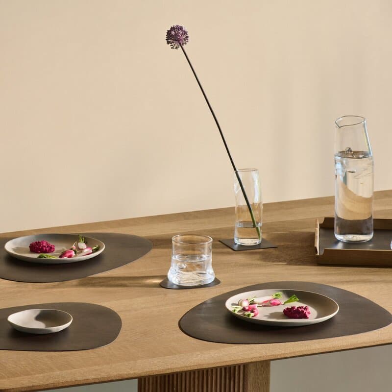 Disse bordmattene er designet av OEKO-TEX® resirkulert skinn med en gummiert bakside, som sikrer at bordmatten holder seg stabil uten risiko for at den sklir bort. Bruk dem direkte på bordet eller varier med bordmatter på en duk, noe som gir ekstra dybde og design til borddekkingen.