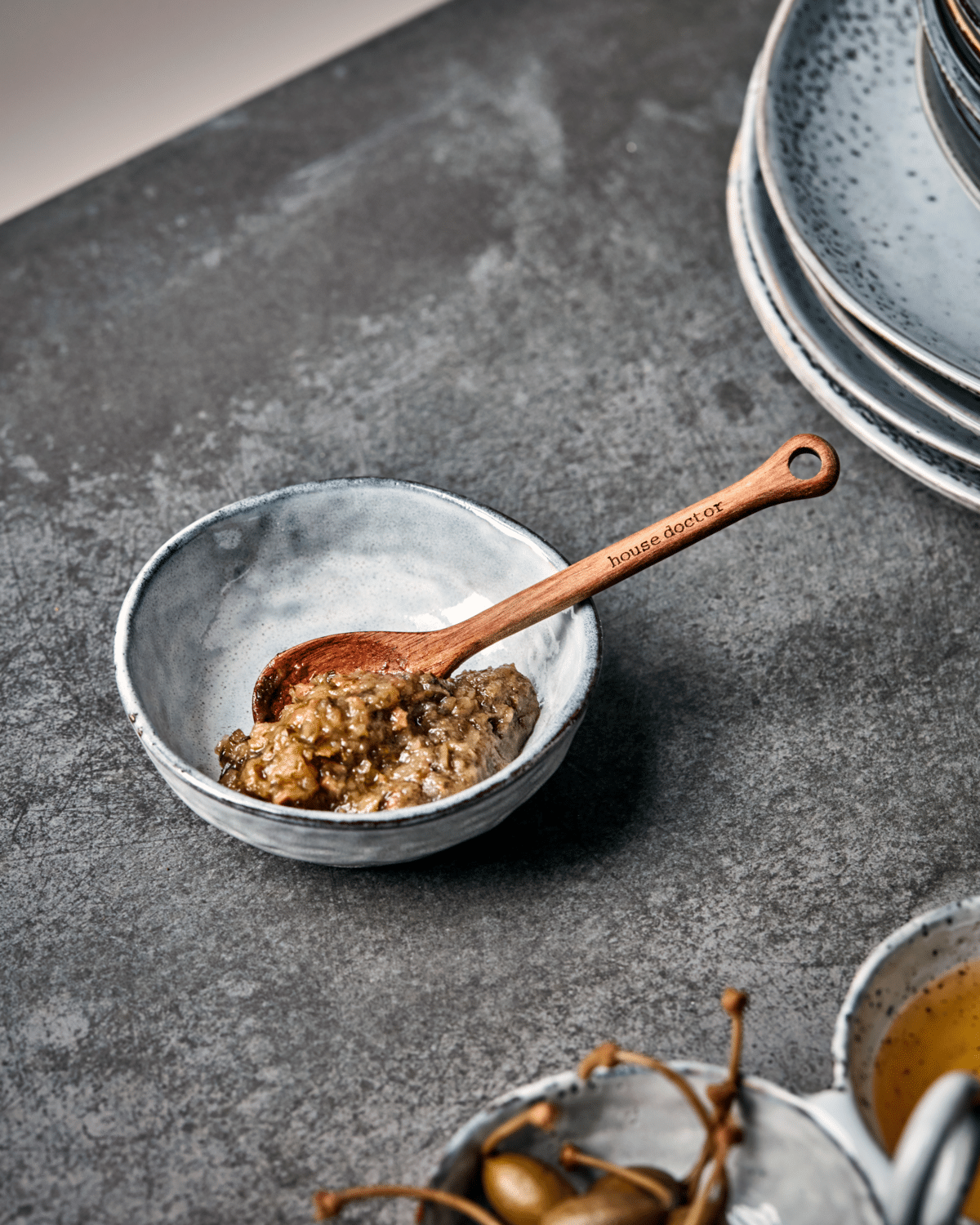 Denne serveringsskjeen i naturlig akasietre tilfører et rustikt preg til ethvert kjøkken. Perfekte for å servere pesto, syltetøy og andre tilbehør, kombinerer disse skjeene funksjonalitet med estetisk appell.