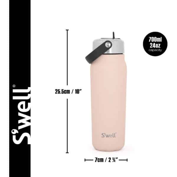 Explorer Flip Straw fra S’Well er en praktisk drikkeflaske med tredobbel, vakuumisolert konstruksjon. Flasken har lokk med sugerør som er avtakbart slik at det enkelt kan vaskes. Flasken holder drikke varmt i 8 timer og kaldt i 36 timer. Bør skylles etter bruk, og unngå oppvaskmaskin.