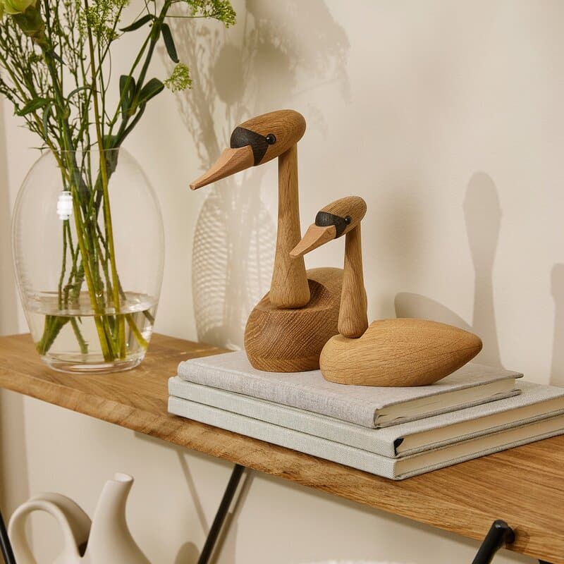 The Cygnet trefigur fra Spring Copenhagen er en elegant svaneunge som bringer en touch av naturens skjønnhet inn i hjemmet ditt. Med en høyde på 13,2 cm har designer Jimmy Kessler fanget essensen av svanens grasiøse og tidløse skjønnhet i denne detaljerte figuren. The Cygnet er laget for å komplimentere den større versjonen, Svanen, og sammen utgjør de et harmonisk par som symboliserer eleganse og ro.