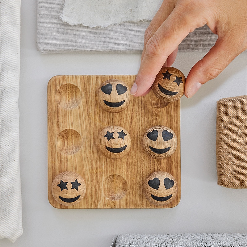 Gi det klassiske tre-på-tre-og-dal-spillet en morsom vri med Spring Emotions®! Hjerteøyne og Stjerneøyne gir spillet sjarm og personlighet med sine finurlige uttrykk. Perfekt som en underholdende mandelgave eller en koselig innflytningsgave, vil dette spillet sørge for at det alltid er en rask og morsom tidsfordriv for hånden. Et sjarmerende tilskudd til ethvert hjem, hvor både barn og voksne kan kose seg med den enkle, men morsomme konkurransen.