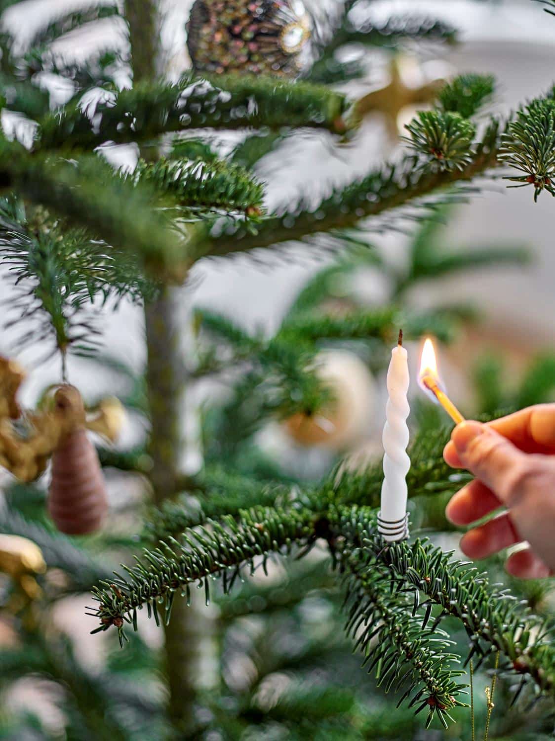 Twist Candles fra Bloomingville er en pakke med 12 tynne hvite parafinlys. Med en diameter på bare 1,2 mm er lysene ideelle for små lysestaker og juletrær. De er tvunnet for hånd og er veldig stilige. De har en brennetid på én time og er selvslukkende.