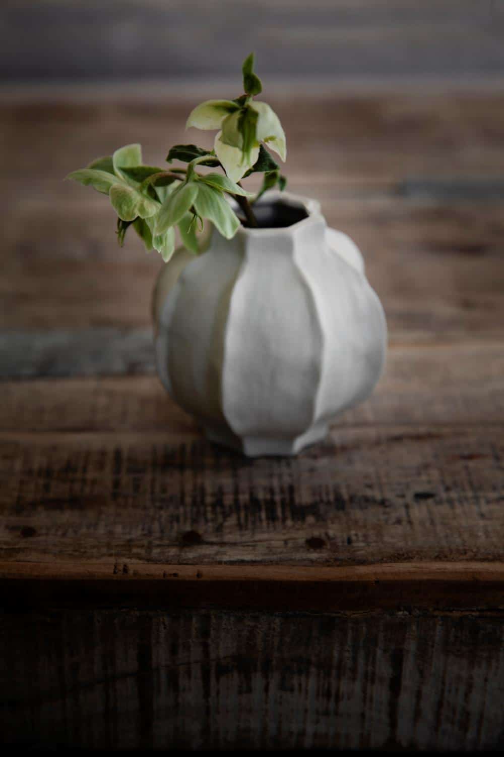 En liten, fin stentøysvase som passer til mindre buketter. Fine detaljer i form av skulpturelle linjer gir vasen et unikt uttrykk.