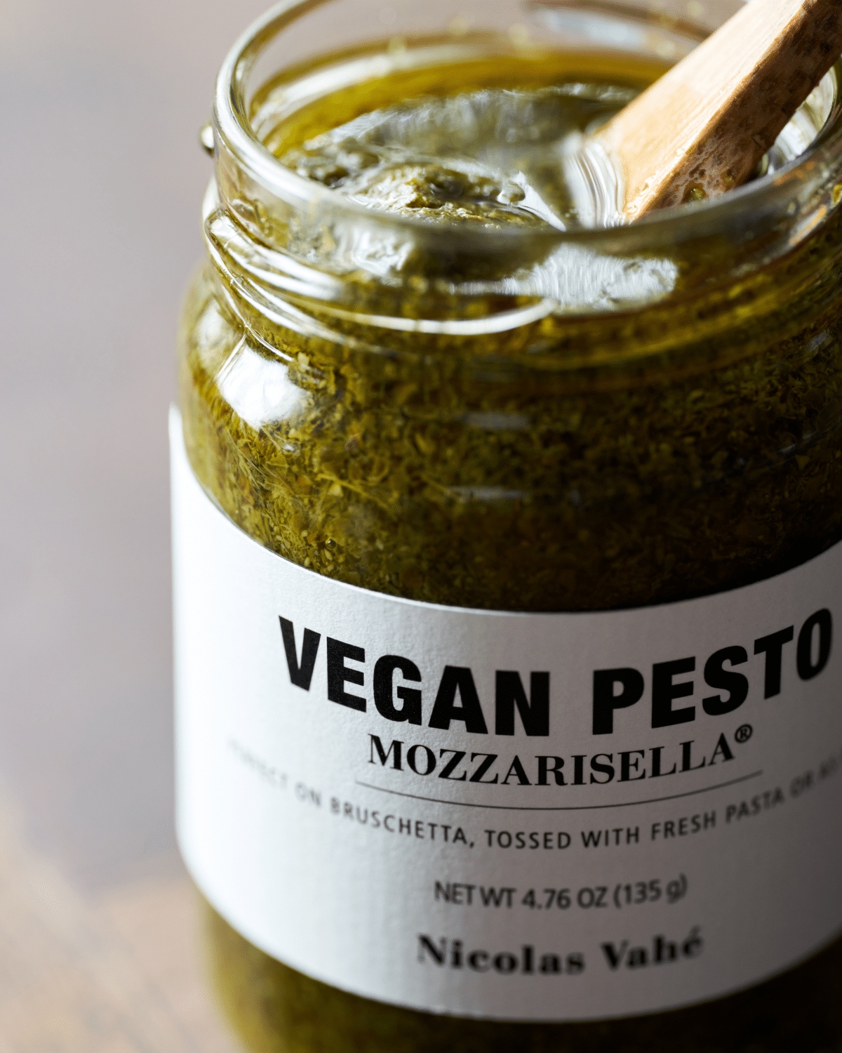 Nyt pastaen din sammen med denne fyldige og veganske pestoen fra Nicolas Vahé. Parmesan er erstattet med risbasert mozzarisella, som beholder den kremete konsistensen du forventer av en pesto. Blandingen av pinjekjerner og cashewnøtter, sammen med olivenoljen gir den en siste touch. Om du spiser vegansk, vil unngå meieriprodukter, eller bare vil prøve noe nytt, så er denne pestoen et opplagt valg.