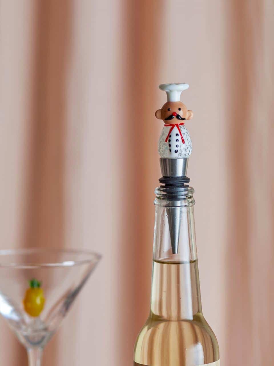 Lynn Wine Stopper fra Bloomingville er en sjarmerende og unik vinpropp. Glassfiguren, som forestiller en kokk, er både munnblåst og håndlaget. Derfor er ingen av disse vinproppene like. Vinproppen har en silikonbunn som sikrer en tett forsegling, slik at vinen din holder seg fersk lenger. Perfekt for å gi et morsomt preg på middagsbordet eller som en gaveidé til vinelskere.
