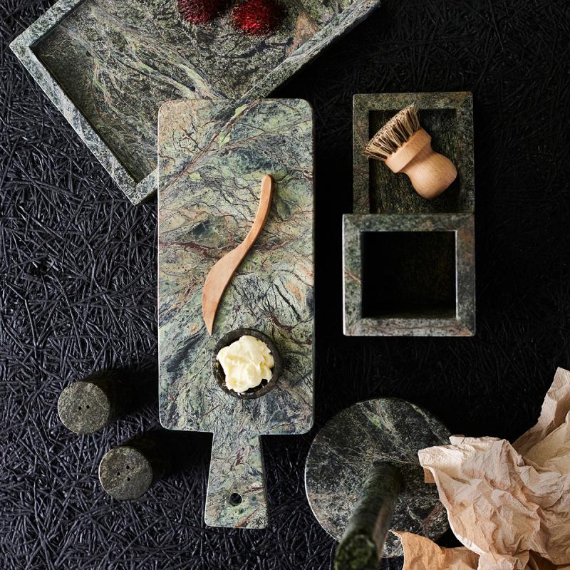 Tåler ikke oppvaskmaskin. I stedet bør produktet vaskes opp for hånd med nøytral såpe, da sterk og syreholdig såpe kan skade den naturlige marmoren.