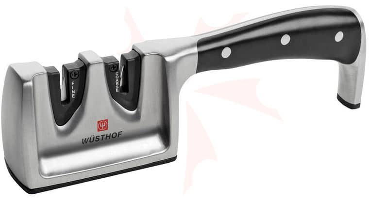 Den enkleste måten å slipe kniver på og holde dem skarpe. Denne 2-trinns gjennomtrekkbare, V-formede knivsliperen med diamantstenger og keramisk stål er spesielt egnet for de som ikke føler seg komfortable med å bruke slipestål eller bryne. Med denne sliperen trekkes kniven ganske enkelt gjennom føringshakkene et par ganger – hakket med diamantstenger brukes til grovere sliping (for sløve blader), mens det keramiske hakket er til fin sliping (for grovt slipte eller moderat skarpe blader) – og resultatene oppnås raskt.